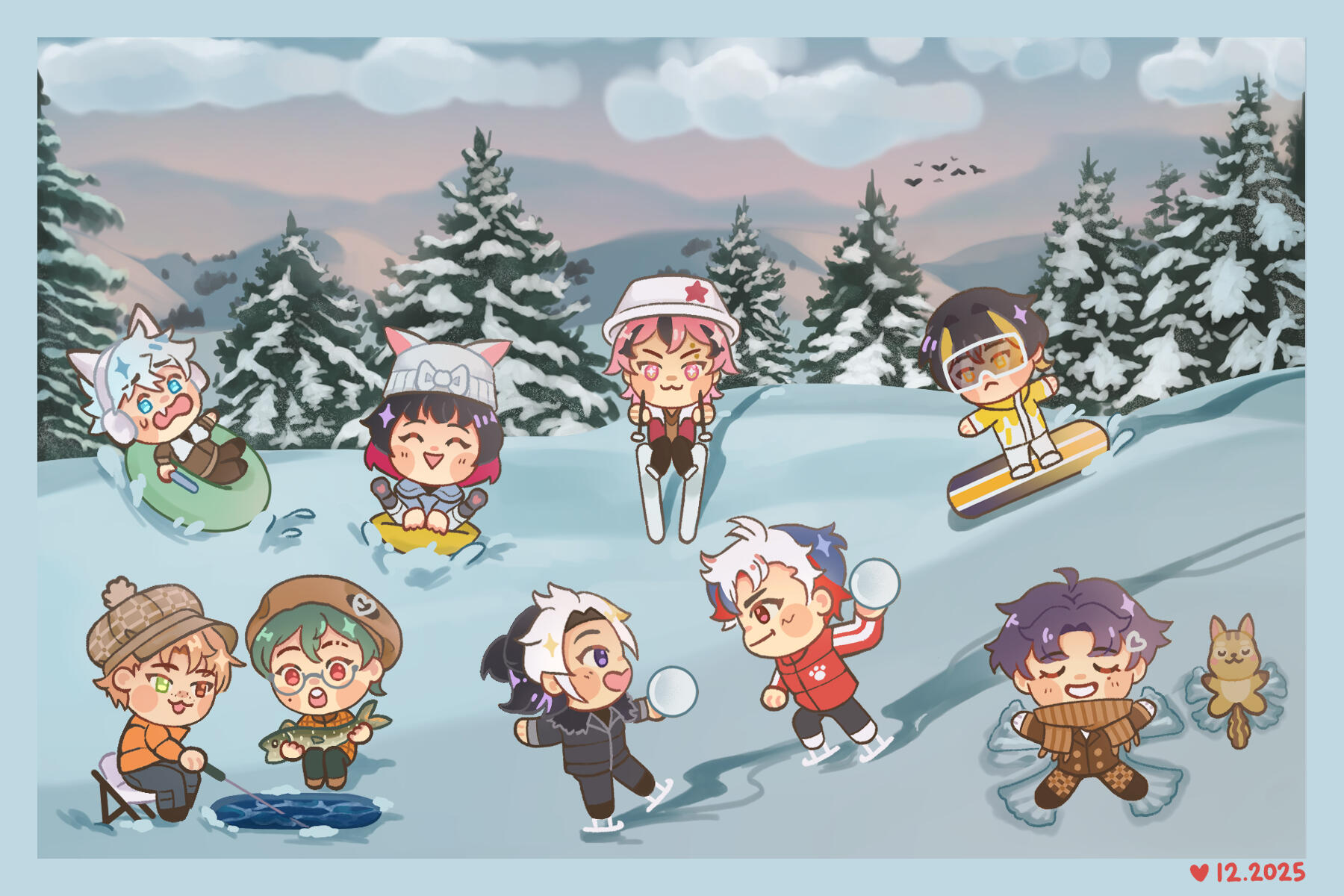 | enstars | natsume, hiiro, ritsu, tsukasa, kohaku, leo, shinobu, tetora, madara |