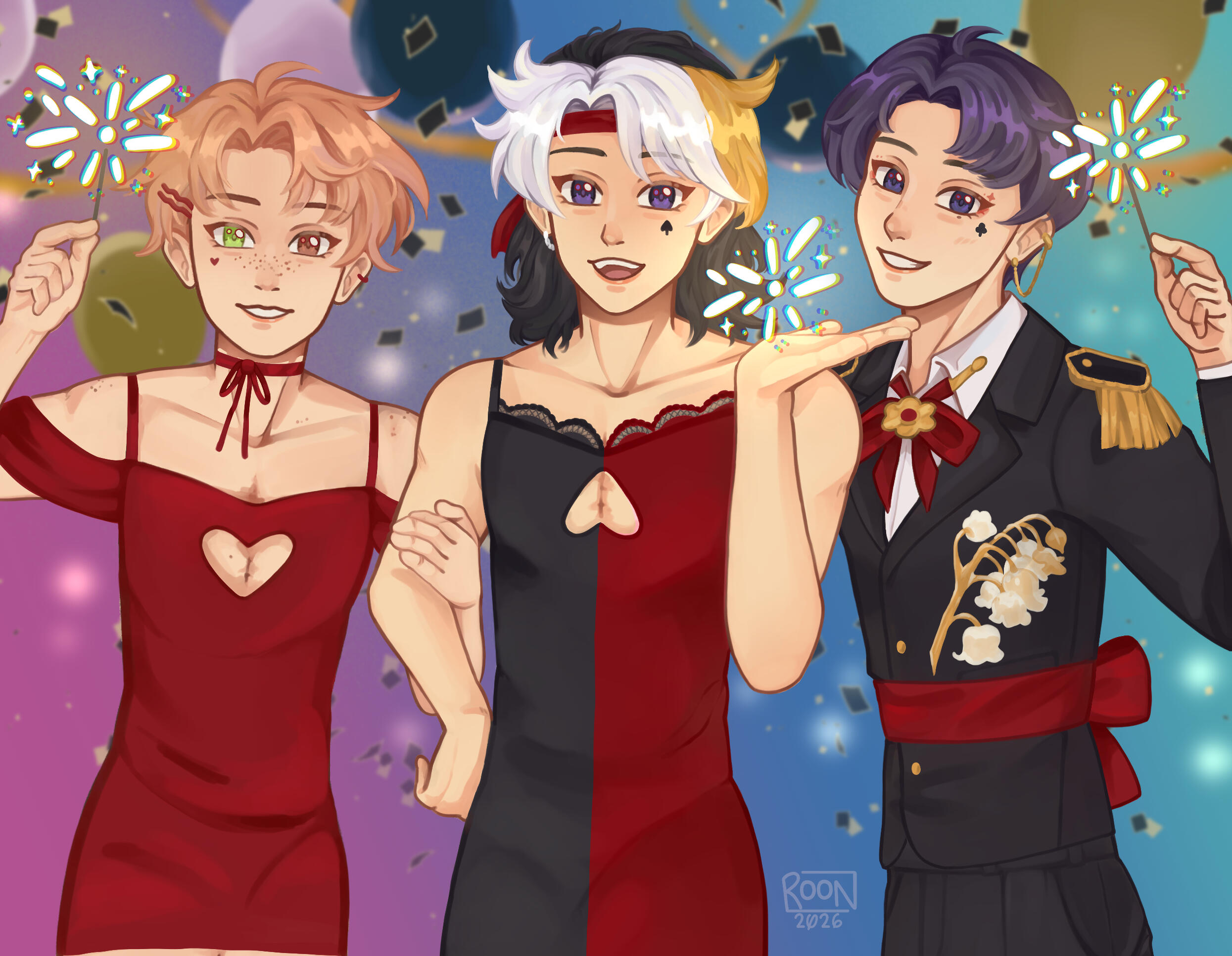 | moriarty the patriot, tsurune, spy x family, link click, mp100, bungou stray dogs, kaiju no 8, haikyuu!, sk8, free! | professor layton, zenless zone zero, genshin impact, honkai star rail, enstars music, twst, persona 4+5, acnh, the great ace attorney | skz, svt, various bgs/ggs |